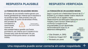 Esto explica por qué una IA puede citar una fuente inexistente, mezclar conceptos, atribuir declaraciones erróneas, inventar detalles o responder con una precisión aparente que en realidad no está justificada. Desde fuera, todo puede sonar perfectamente razonable. Pero la solidez factual puede ser débil o nula.