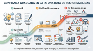 Usar la IA con criterio implica aceptar tanto su valor como su límite. No se trata de confiar en todo ni de desconfiar de todo. Se trata de graduar la confianza según el tipo de tarea, el coste del error y la posibilidad de comprobar el resultado.